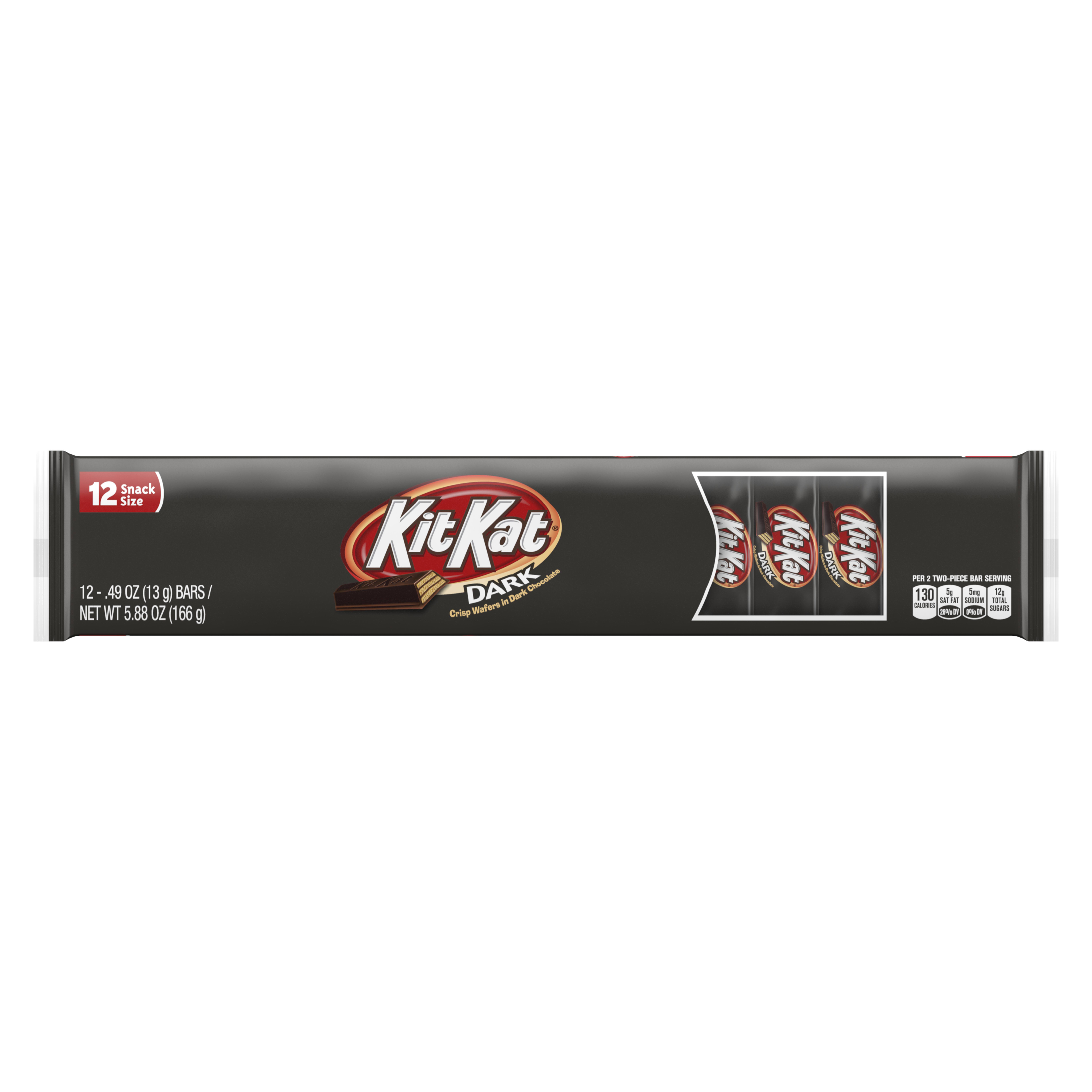 Calories in fun size dark chocolate kit kat. There are 104 calories in 2 fingers (20 g) of nestle kit kat dark. With 104 calories they're a great treat to enjoy during your break! Per 3 two piece bar serving: Get full nutrition facts for other nestle products and all your other .